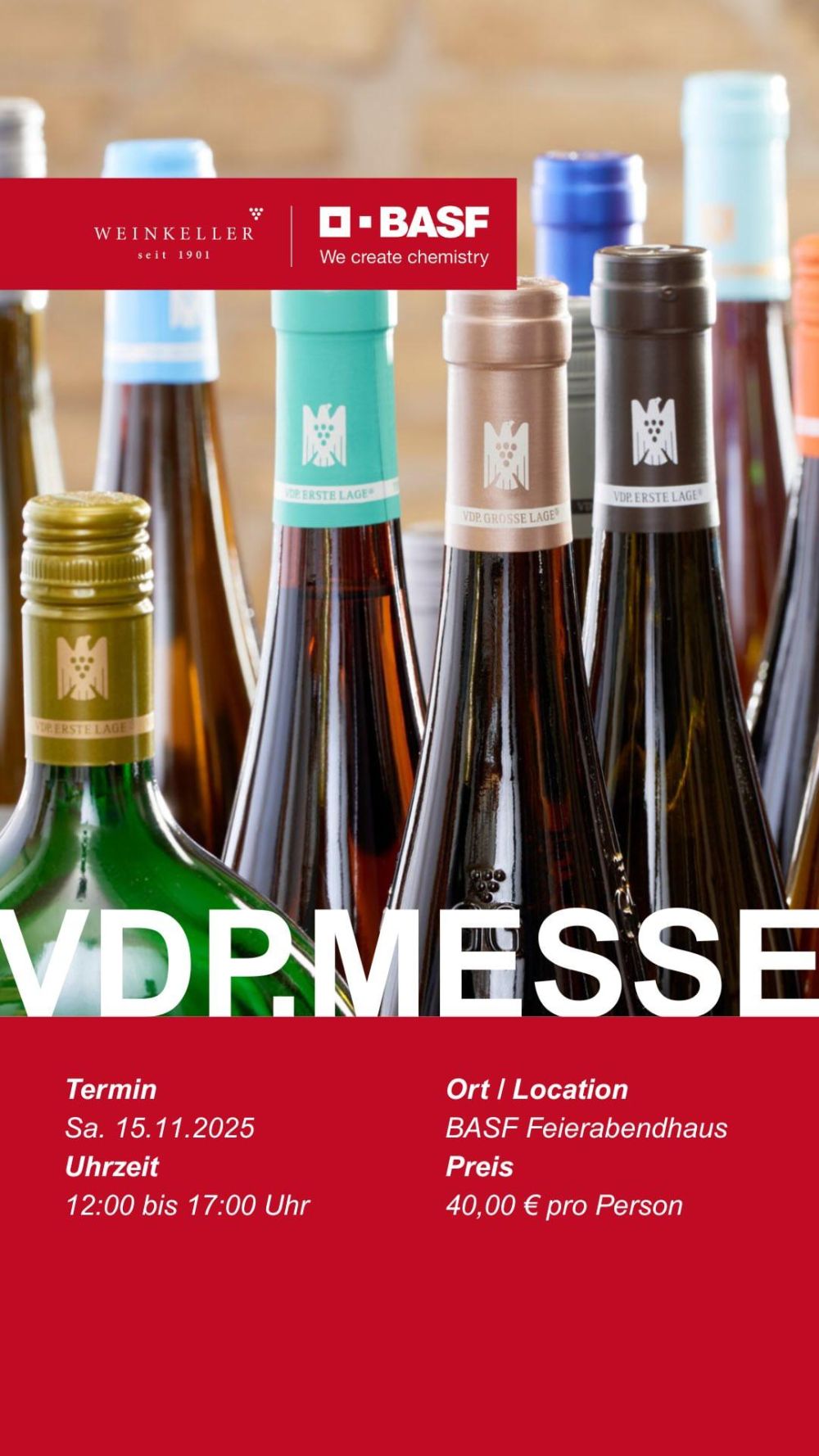 Gemeinsam mit rund 30 Spitzenweingütern des VDP aus verschiedensten deutschen Anbaugebieten präsentieren wir auch in diesem Jahr bei der VDP-Messe der BASF im Feierabendhaus eine exklusive Auswahl unserer Weine.
